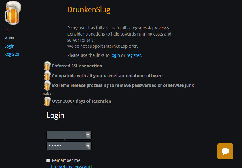 The DrunkenSlug forums are a great resource and are available, without restriction, even to free members. So, if you are able to get an account, you should make an account even if you have another indexer. The community is very helpful and if you’re new to Usenet, it would be especially useful for you. DrunkenSlug does not however, have an IRC channel for its users, and you might want to look elsewhere if this was a major requirement for you.