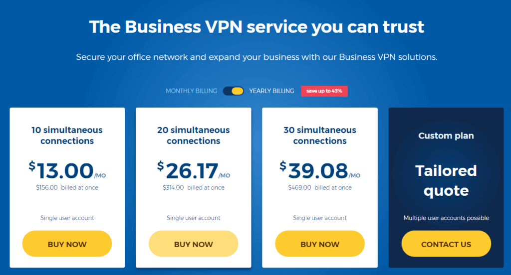 The company also offers the business plans for the corporations out there. Business Plan holders also get the same features as the consumer plan holders. However, the pricing varies from package to package. The company offers the following business plans