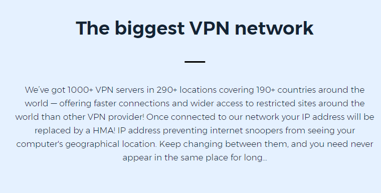 Just like other VPN services, HideMyAss also offers a variety of privacy features to attract customers. The company offers the following privacy features to its users.