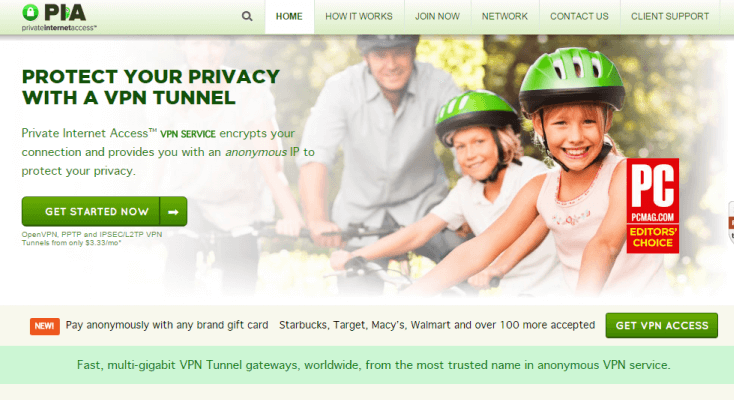 Private Internet Access accepts payment from a number of merchants you will be able find one that works just right for you Paypal, Visa Mastercard, Amex, Amazon payments, Bitcoin, Discover, Google Checkout, CashU and OKPay. This is something we have never seen before but you can pay for their service by trading any gift card, for example $25 starbucks gift card gets you 100 days of access or $50 Walmart gift card gets you 366 days of access. They have thought of everything because if you don’t have a gift card you can buy one from their website with instant delivery.